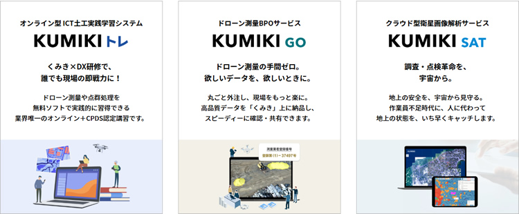 一方で、ドローン測量に関心を持つ企業でも、利用頻度や人材体制など置かれた状況はさまざまだ。そこでスカイマティクスはくみきを中核に関連サービスを展開し、利用の裾野を広げている。